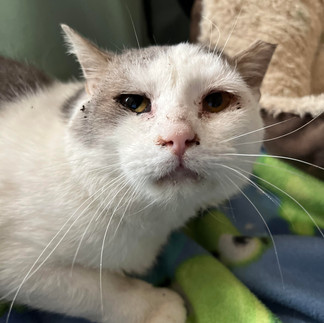 Next came Grisham and Nicholas Sparks. Both sweet boys were found with lice and other concerns. Grisham is leukemia positive and about seven years old. While many other rescues may euthanize on the spot, EBCP instead works to find a home where the positive cats will be comfortable and thrive. This will have to be a home without other cats so that the illness may not be transmitted. Nicholas Sparks had to have most of his teeth removed and currently has six teeth due to periodontal disease. Once healed, this Siamese boy will be ready to find his forever home.